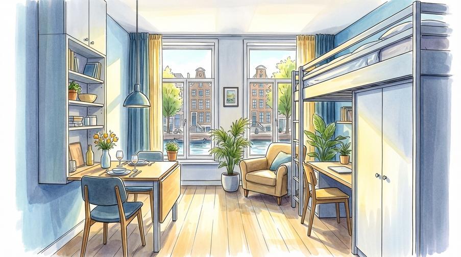 Małe mieszkanie w Amsterdamie? Oto praktyczne sztuczki, które uwalniają przestrzeń — bez łamania umowy najmu.