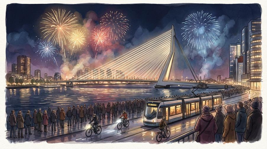 Sylwestrowy pokaz nad Erasmusbrug wraca z rozmachem. Sprawdzamy najlepsze miejsca, dojazd i zalecenia bezpieczeństwa.