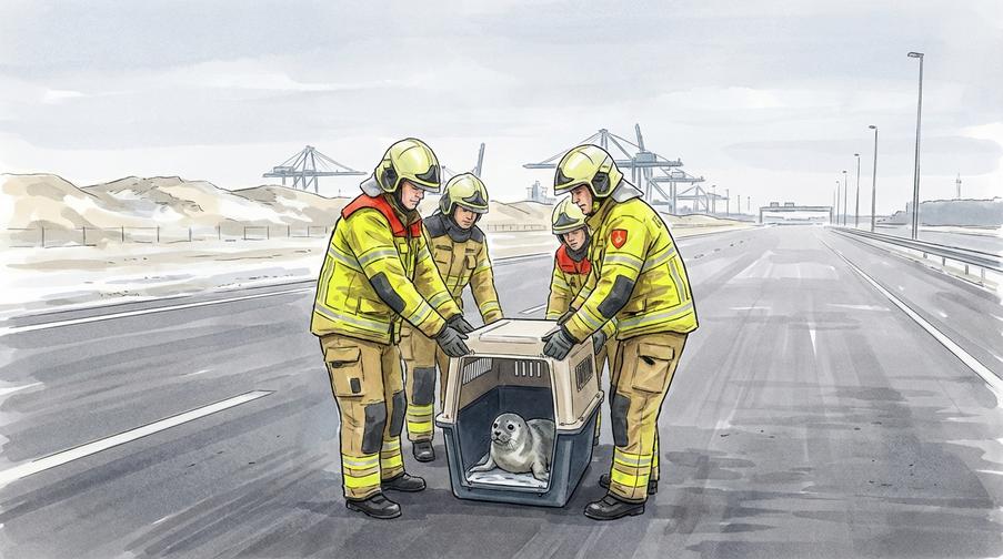 Na N15 w rejonie Maasvlakte uratowano rannego szczeniaka foki. Służby apelują: nie dotykaj, nie poić – dzwoń po pomoc i podaj lokalizację.