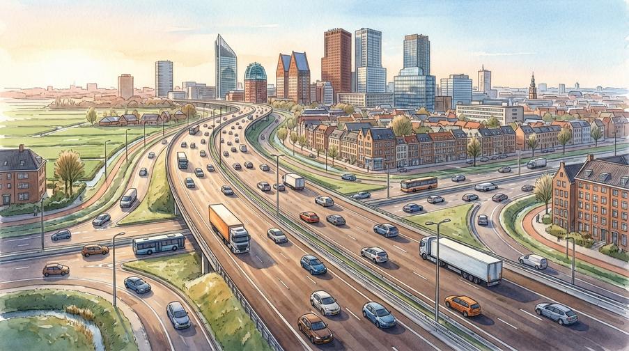ANWB notuje: w 2025 korki w Holandii wzrosły o 3%, ale w regionie Rotterdam spadły o 8%. Dla dojeżdżających to realna oszczędność czasu.