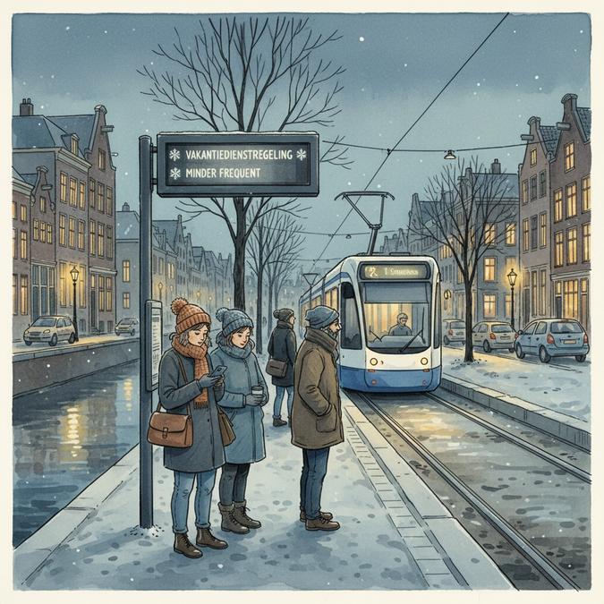 Mniej kursów metra, tramwajów i autobusów oraz przerwa na promie Rozenburg–Maassluis. Zaplanuj dojazdy świąteczne, zwłaszcza przy nocnych zmianach.