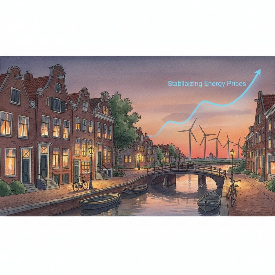 Globalne ceny energii stabilizują się po burzliwym okresie. Holenderskie gospodarstwa i firmy zaczynają odczuwać spokojniejsze oferty i mniejszą presję kosztów.